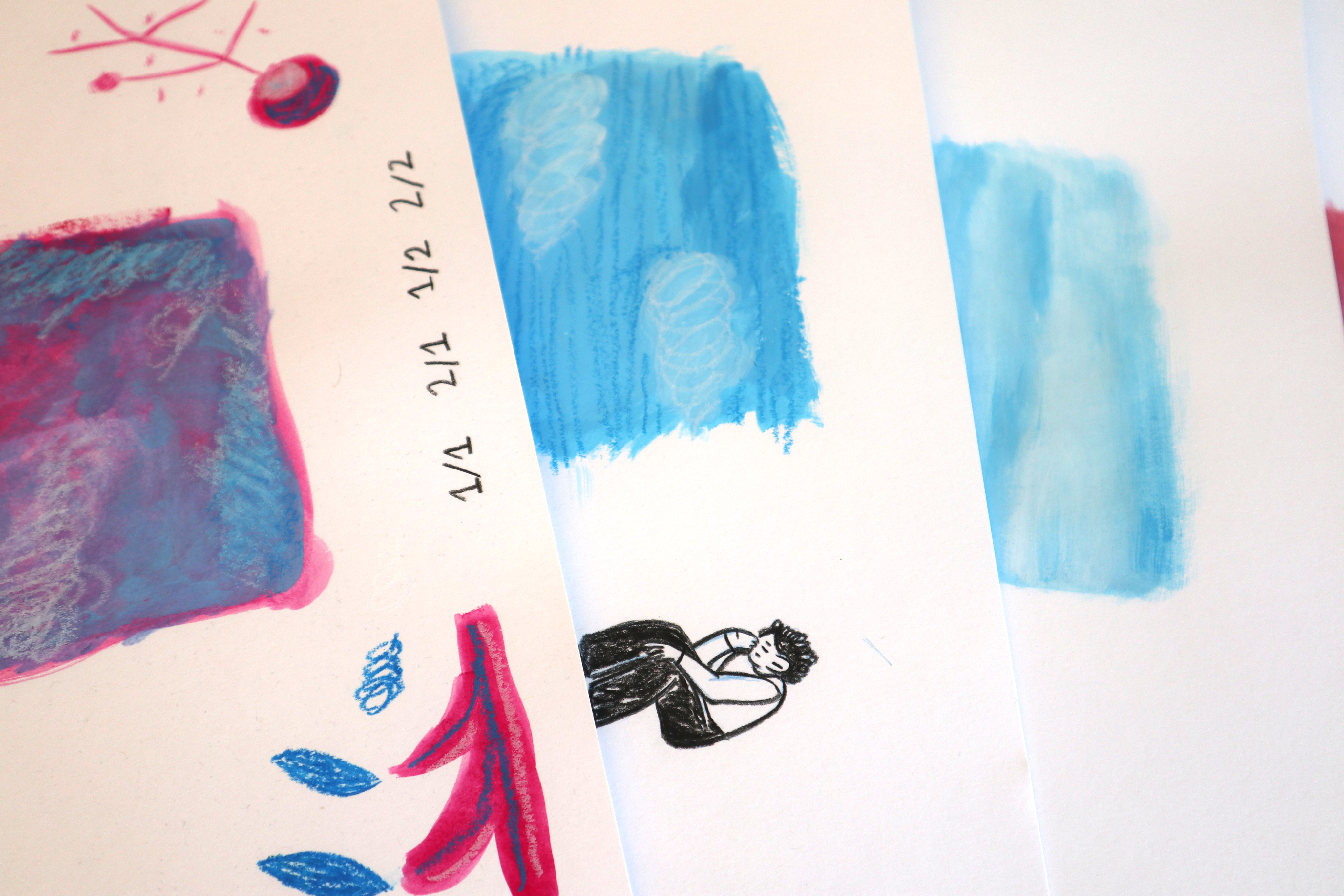 I explored poses that represent a moment of calm and others that reflect an aerospace emergency. I also worked with textures that evoke a serene or chaotic sky, using color to add meaning and emotion to each situation.